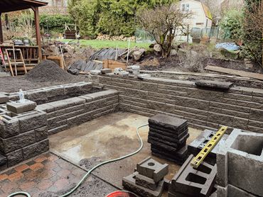 Aesthetic and structurally sound natural stone wall or cast block walls can greatly improve the look of a landscape and can be done in your choice of material.